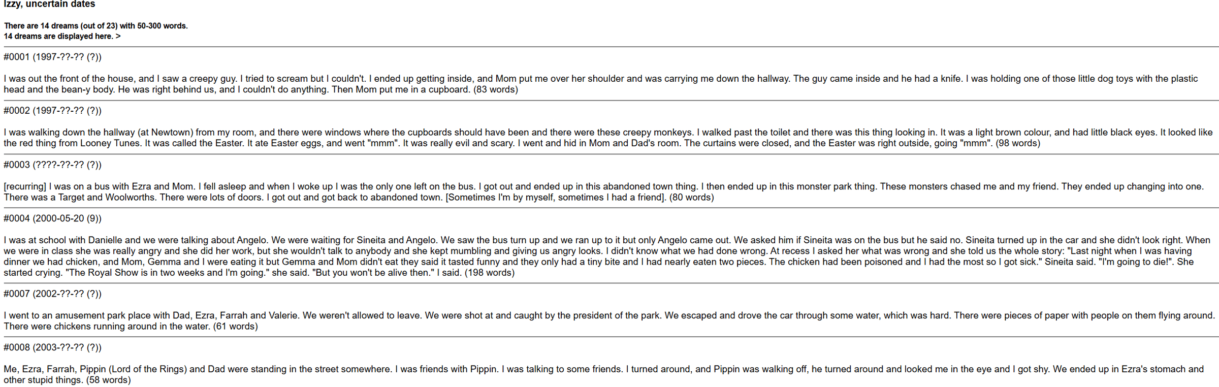 如果你也對「窺探別人的夢」感興趣,有一群人在網路上建了一個叫 DreamBank 的公開資料庫,裡面有超過兩萬兩千個普通人記錄下來的夢境。