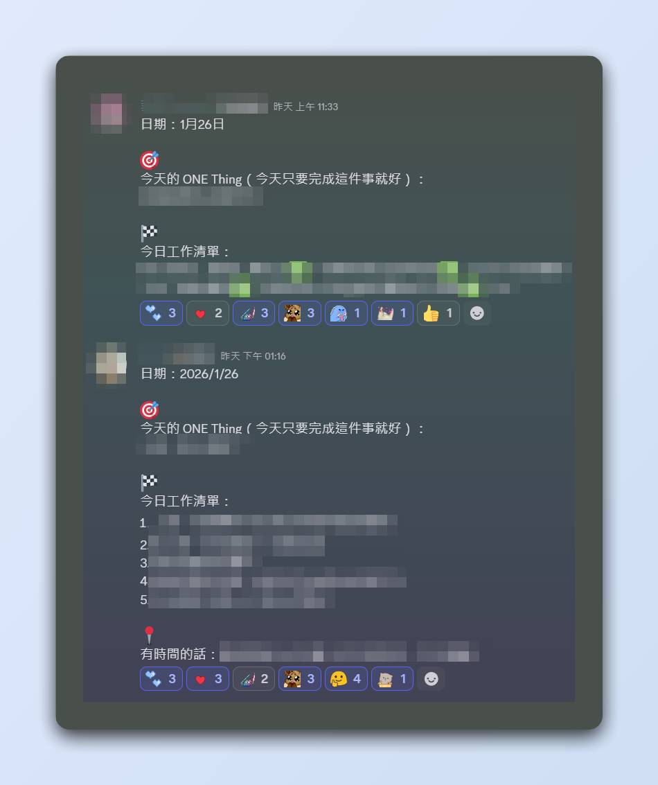 我覺得用 Highlight 這種方式去落實非常棒,我現在自己也是邀請陪跑計畫中的夥伴們,可以每天在這邊分享自己今天最重要的事情,對焦自己的注意力。