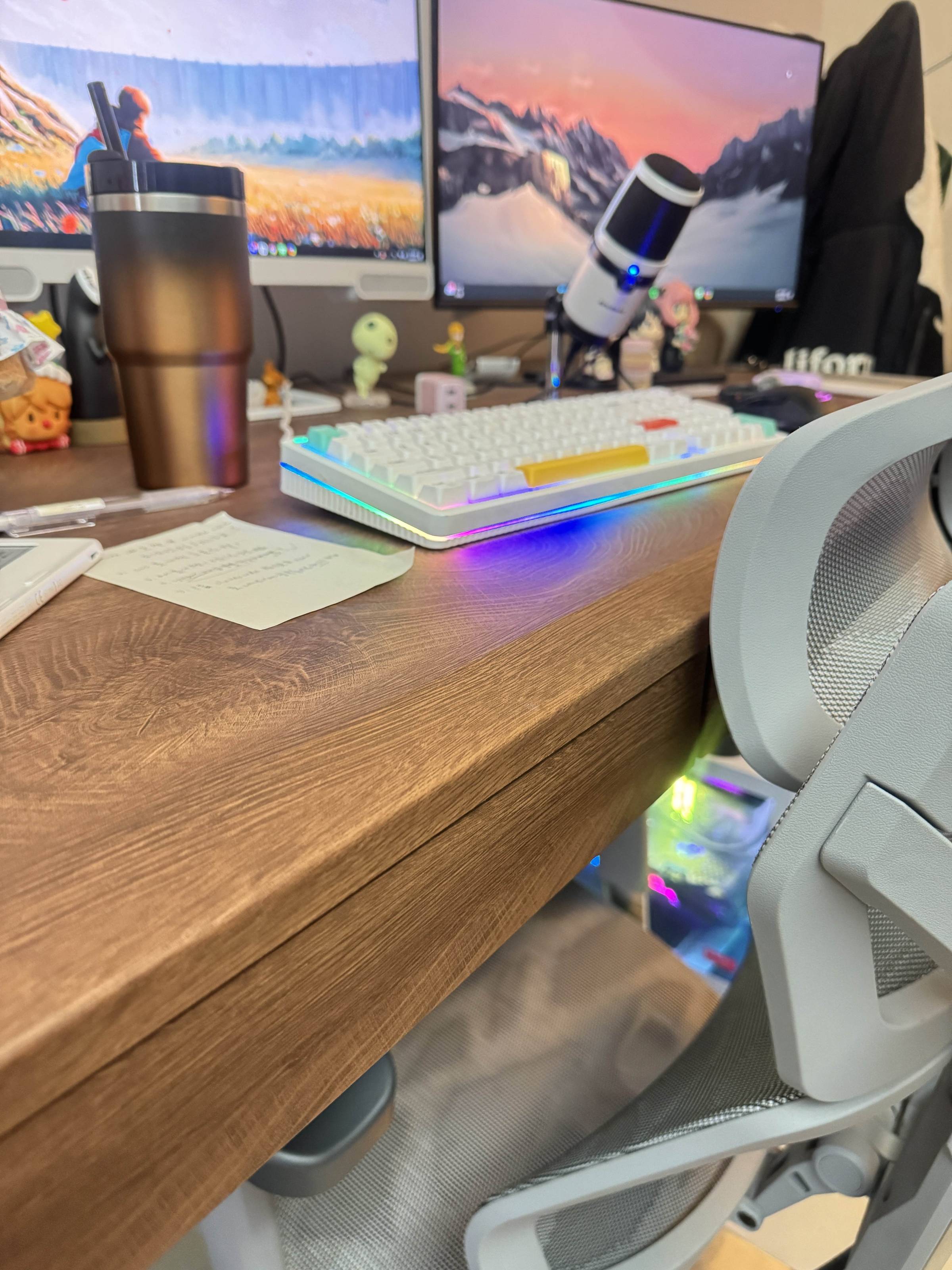 比如說當我下班、想要認真生活的時候,我會把升降桌升高,然後把椅子卡在桌子前面,這樣我就進不去座位,也沒辦法工作。
