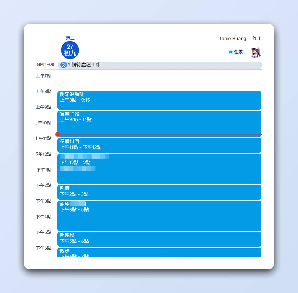 我會把需要優先處理的項目填入 Google Calendar,確保每個時間區塊都能被好好運用。